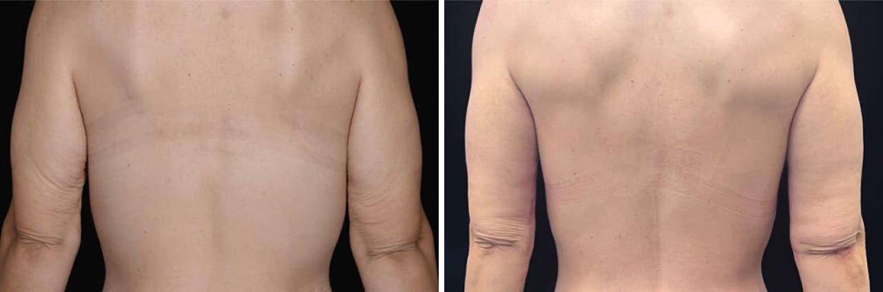 You’ll notice an immediate improvement in the shape, contour, and firmness of your upper arms after surgery. As swelling and bruising subsides, more of your new upper arm shape will be revealed. After 3 months, your arm lift results will be very near their final appearance, with full results visible between 6-12 months once residual swelling completely resolves.